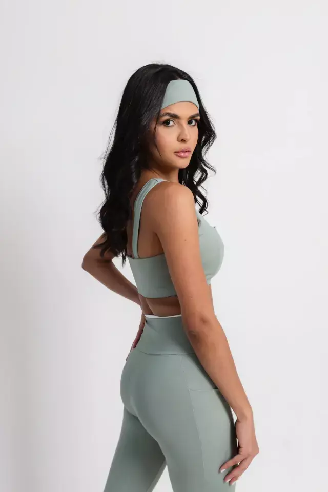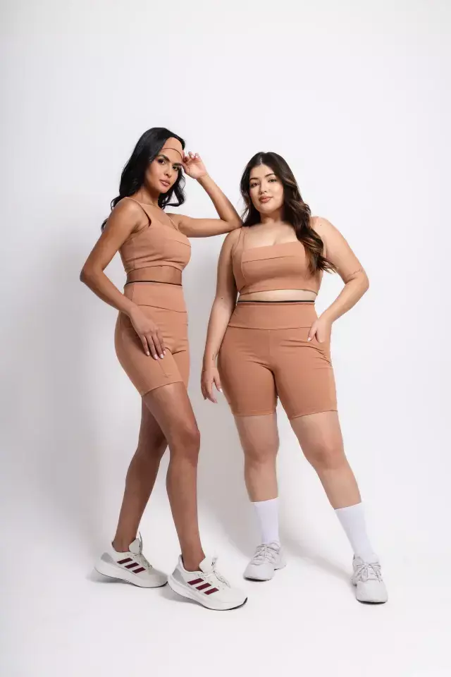Top em malha encorpada de alta sustentação, duplo e tecnológico.
